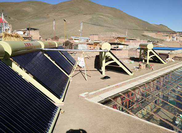 每戶配太陽(yáng)橋太陽(yáng)能1800/58-30ZGB十臺(tái),滿足沼氣池加熱,房間取暖及水炕恒溫。